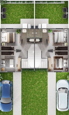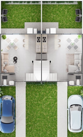 Casa habitación con 60 mts2, la cual cuenta en planta baja con: sala, comedor, cocina, medio baño, cochera para 2 autos, patio y área de servicio. En planta alta: dos recámaras, y un baño completo compartido.